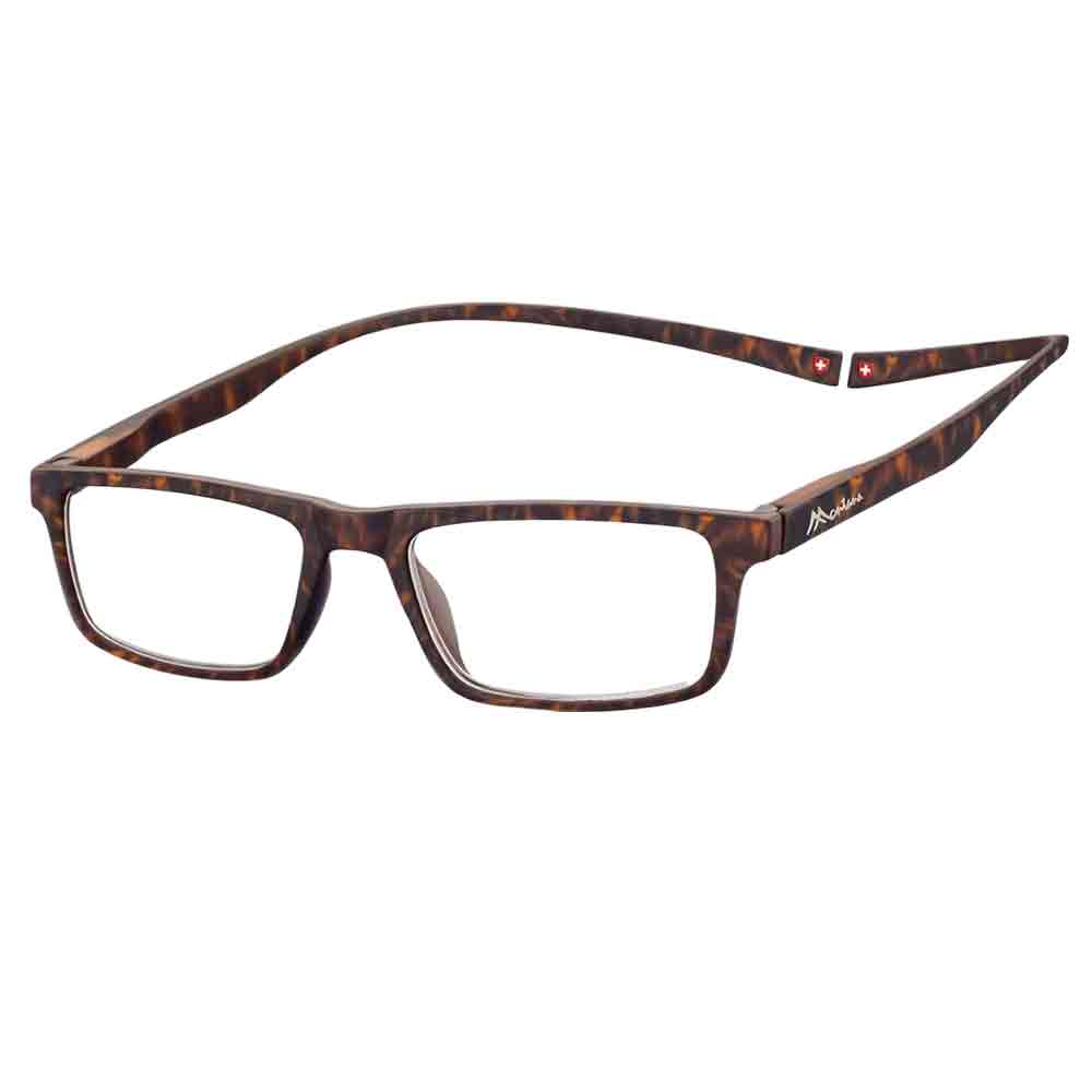 Les Lunettes aimantées Montana Eyewear Rectangle MR59 Ecaille sont disponibles en lunettes de repos, avec des verres anti-reflet traités Cool Blue ou des verres loupe presbytie de +1.00 à +3.50 de correction.