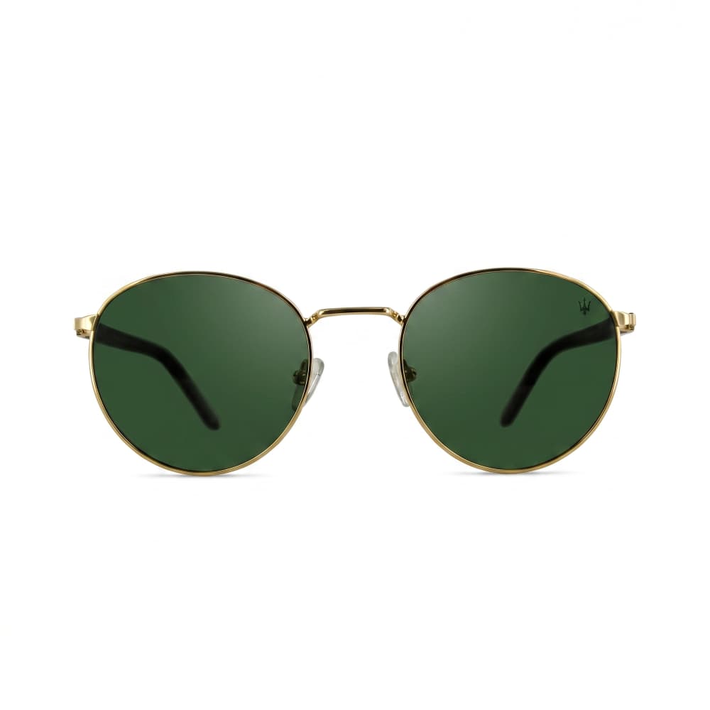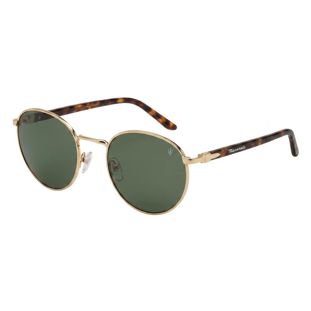 Les lunettes de soleil Maserati 17259 Doré sont des solaires en métal doré issues de la collection Maserati. Elles sont équipées de verres solaires de couleur G15, teinte gris-vert de catégorie 3 et d'un traitement anti-reflet face interne. Logo Maserati gravé sur le haut du verre gauche.