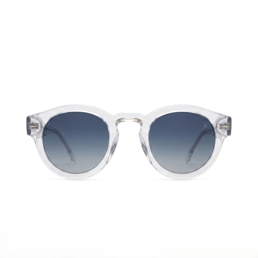 Les lunettes de soleil Maserati 8964 Cristal sont des solaires en acétate transparent issues de la collection Maserati. Elles sont équipées de verres solaires dégradés de teinte gris-bleuté de catégorie 3 et d'un traitement anti-reflet face interne. Logo Maserati gravé sur le haut du verre gauche.