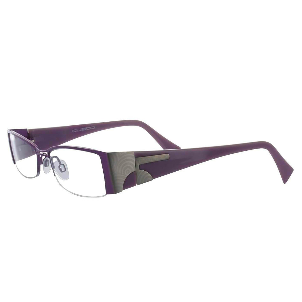 The Custo 4006 Mauve and Gun Glasses are available as rest glasses, with Cool Blue treated anti-reflective lenses or presbyopia magnifying lenses from +1.00 to +3.50 correction.
