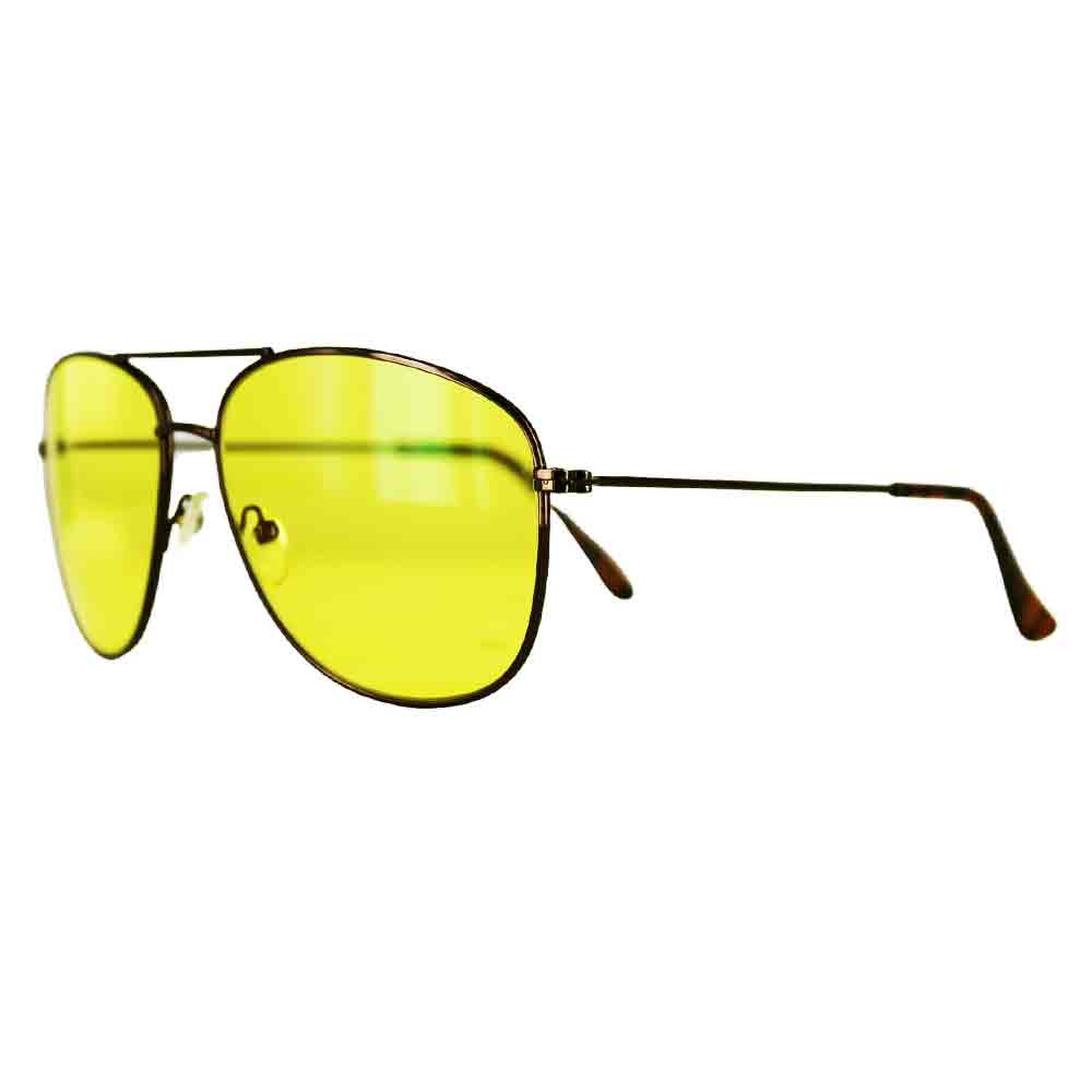 The Varionet Aviator 3083 Brown Driving Glasses are lightweight metal glasses with a trendy look equipped with yellow lenses specially designed for safe driving at night .