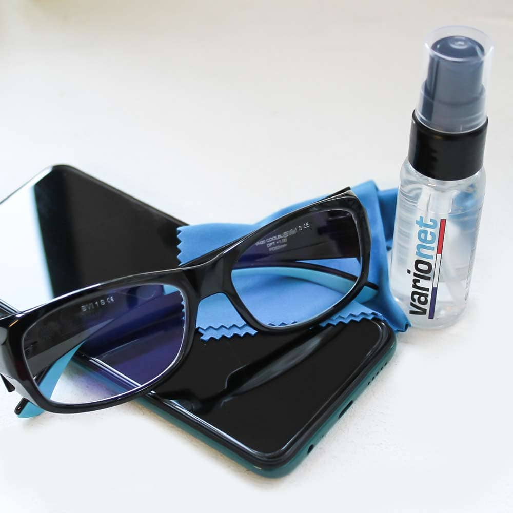 The Varionet Made in France cleaner is perfect for all types of polycarbonate, organic or mineral lenses and can be used on various anti-reflective, anti-blue light treatments, etc. To preserve your reading glasses or computer glasses for longer, use it with the Varionet microfiber cloth .