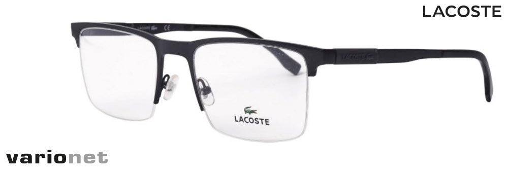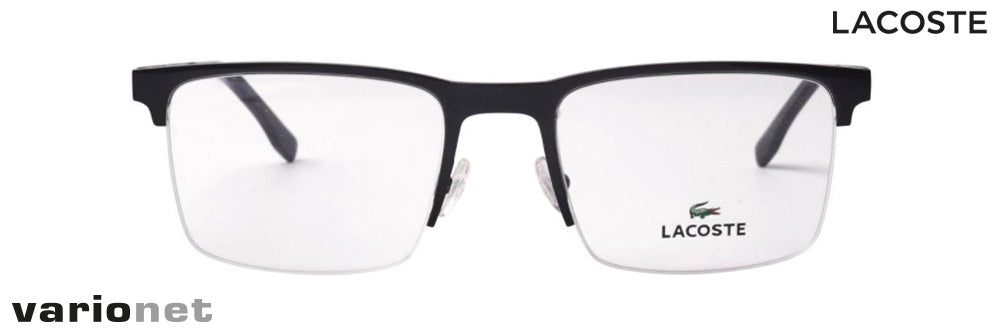 The Lacoste L2244 Black glasses are men's semi-rimless metal glasses from the Lacoste collection.