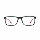 The Mezzo MZ20075 Gray and Red Glasses are available as anti-blue light glasses with Cool Blue coated rest lenses or as reading glasses with decreasing lenses for presbyopia corrections from +1.00 to +3.50.