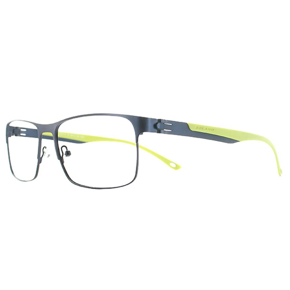 The Solano 10215D Navy and Yellow Glasses are available as anti-blue light glasses with Cool Blue coated rest lenses or as reading glasses with decreasing lenses for presbyopia corrections from +1.00 to +3.50.